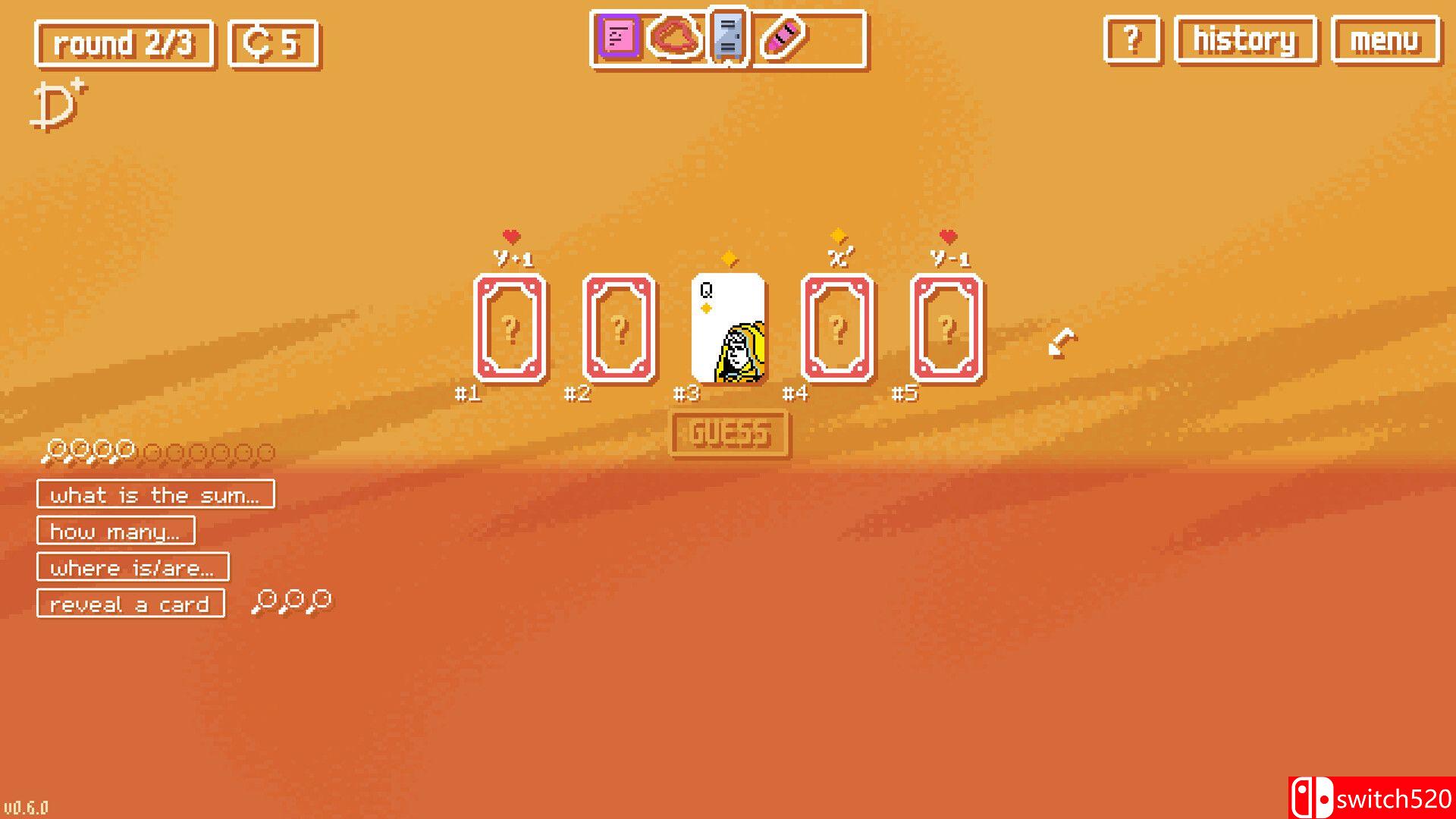 《大脑学校》是一款策略类(SLG)游戏,《大脑学校》是一款由 Sokpop Collective 开发的轻松卡牌推演解谜游戏。游戏的核心目标是未加密由标准52张扑克牌组成的隐藏代码。你将通过消耗有限的“线索点”来提出诸如“点数最低的牌在哪?”或“所有黑桃牌的点数总和是多少?”等问题。这并不是简单的翻牌游戏,而是需要你动用逻辑与演绎技巧,将破碎的线索拼凑成完整的答案。随着关卡推进,代码长度会增加,难度不断攀升。switch520