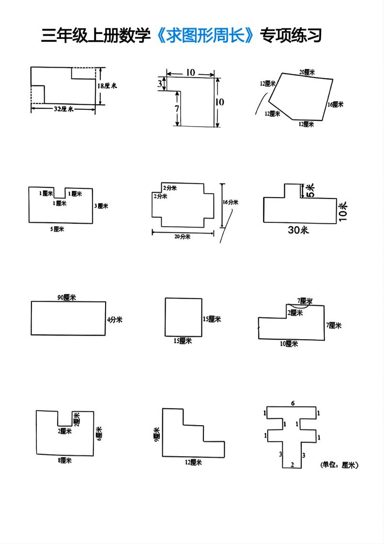 三年级上册数学求图形周长专项练习