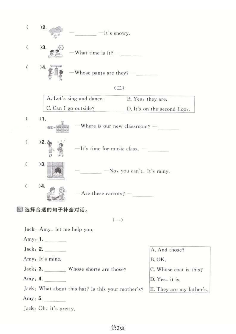 四年级下英语期末疑问句知识点训练《PEP版》