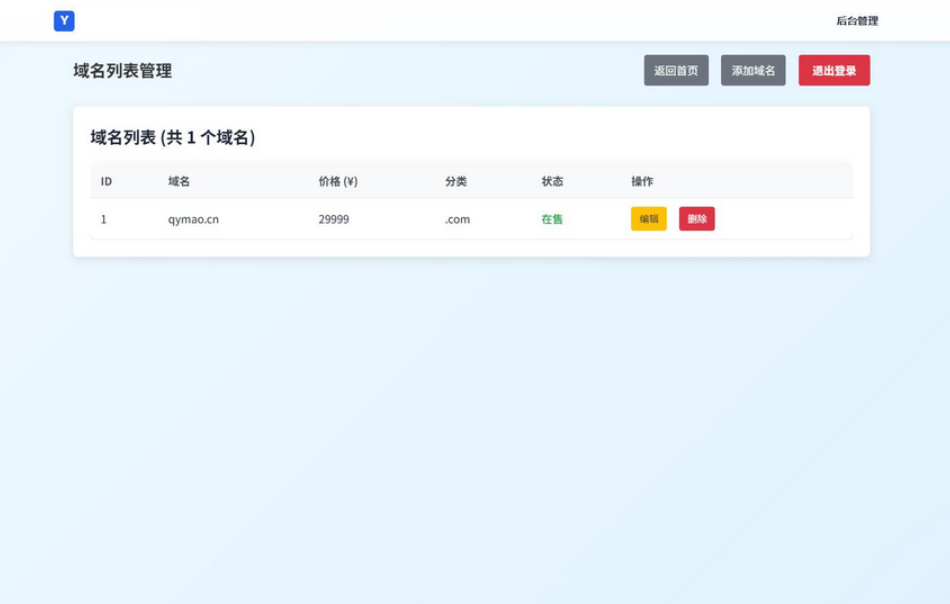 域名出售系统 带简易后台管理的米表系统 自适应页面