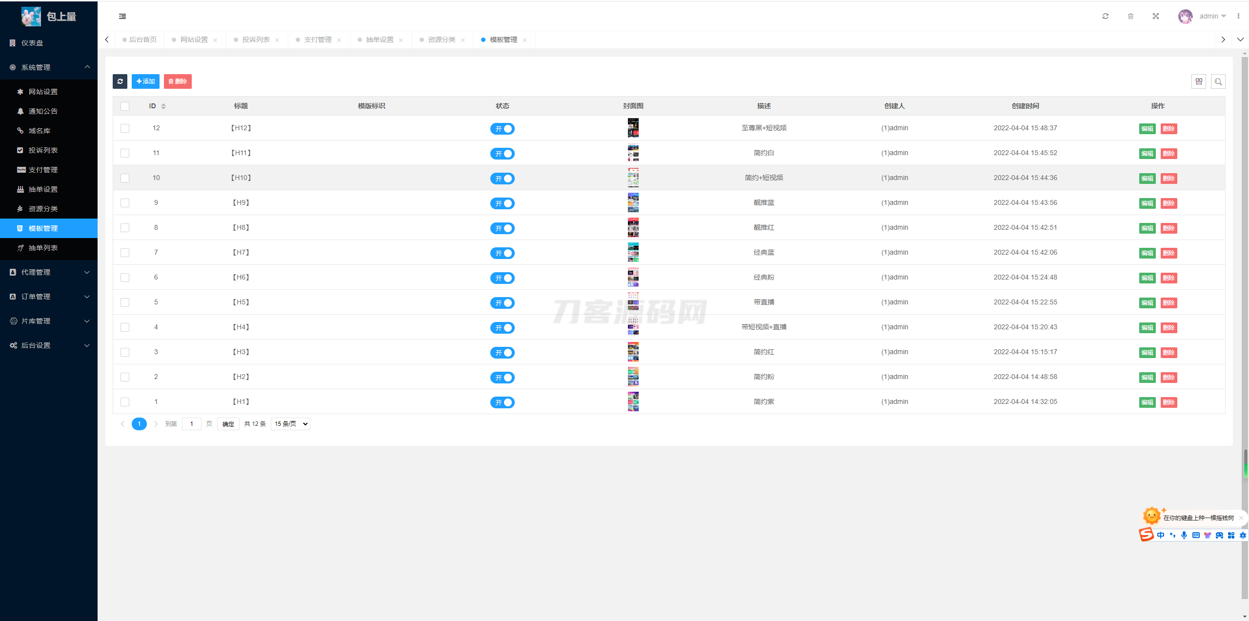 源码 多套模板 有代理后台 已对接支付